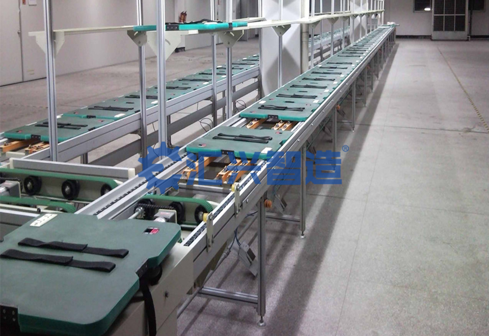 該類生產裝配線采用PVC防靜電尼龍片基帶作為傳送介質,以鋁合金型材為護邊,適用于汽車零部件、儀器儀表、家電產品等行業的自動化裝配流水線。