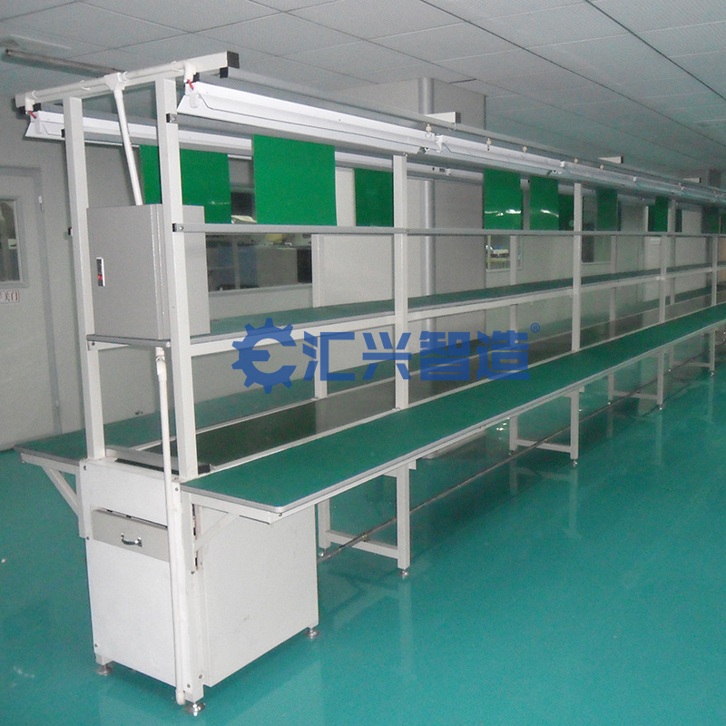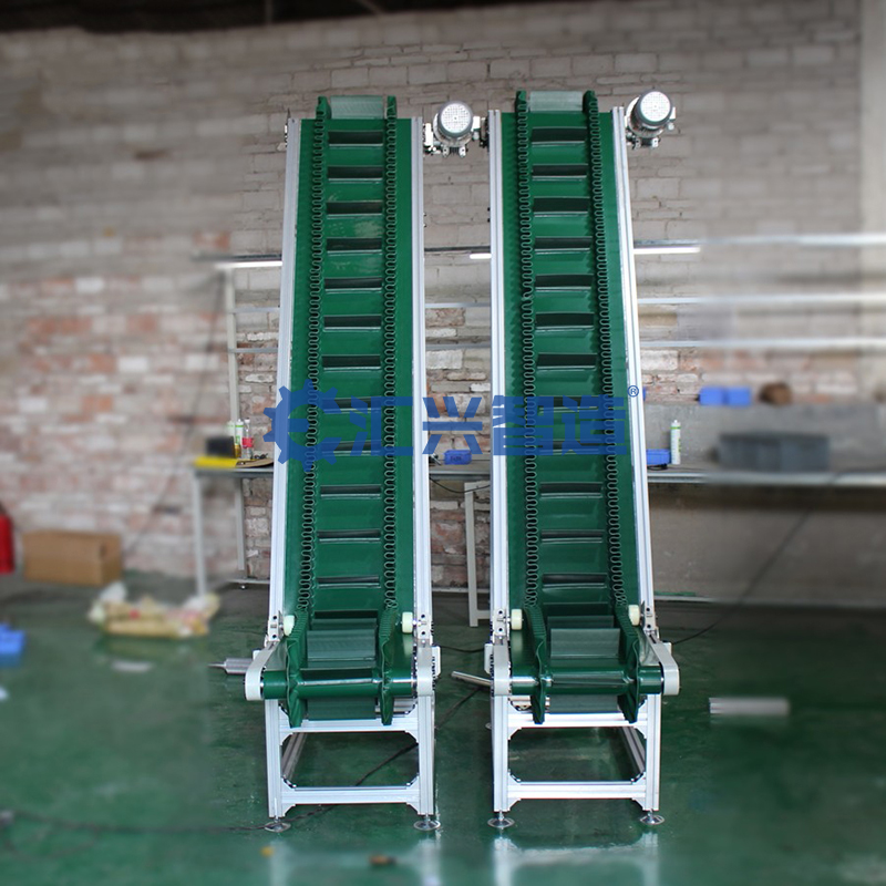 皮帶機(jī)結(jié)構(gòu)形式有:槽型皮帶機(jī)、平型皮帶機(jī)、爬坡皮帶機(jī)、轉(zhuǎn)彎皮帶機(jī)等多種形式,輸送帶上還可增設(shè)提升擋板、裙邊等附件,能滿足各種工藝要求。輸送機(jī)兩側(cè)配以工作臺、加裝燈架,可作為電子儀表裝配,食品包裝等皮帶機(jī)裝配線。