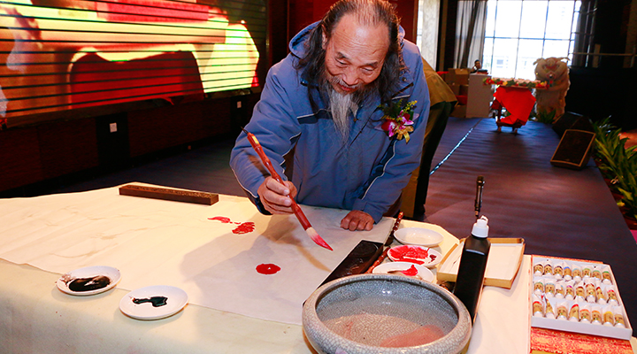 著名書(shū)畫(huà)藝術(shù)家?guī)X南畫(huà)派泰斗梁培浩教授現(xiàn)場(chǎng)創(chuàng)作<span style="font-family:" font-size:14px;"="">