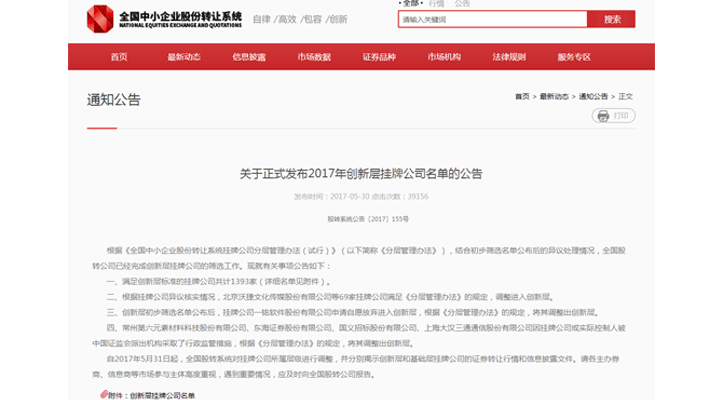 廣東匯興精工智造股份有限公司自2016年12月30日成功掛牌新三板后又傳來一大喜訊,5月30日,全國中小企業股份轉讓系統(以下簡稱“全國股轉系統”)公布了2017年創新層掛牌公司名單,廣東匯興精工智造股份有限公司(股票代碼:839258)成功從全國一萬余家新三板掛牌企業中脫穎而出,躋入新三板“優等生”行列。