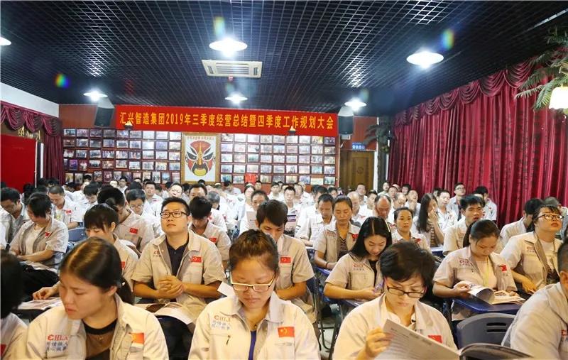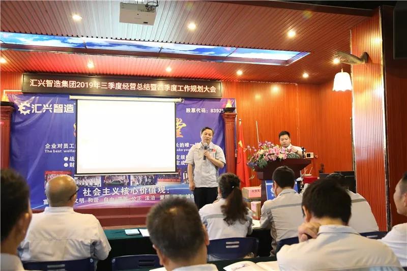 9月7日上午,廣東匯興精工智造股份有限公司在東莞總部隆重舉行2019年第三季度經(jīng)營(yíng)總結(jié)暨第四季度工作規(guī)劃大會(huì)。匯興智造東莞總部、東莞分公司、深圳辦事處、順德辦事處全體同仁齊聚匯興學(xué)院,總結(jié)2019年第三季度工作經(jīng)驗(yàn),為2019年最后一季度的沖刺工作做籌劃,竭盡全力,拼搏奮斗。