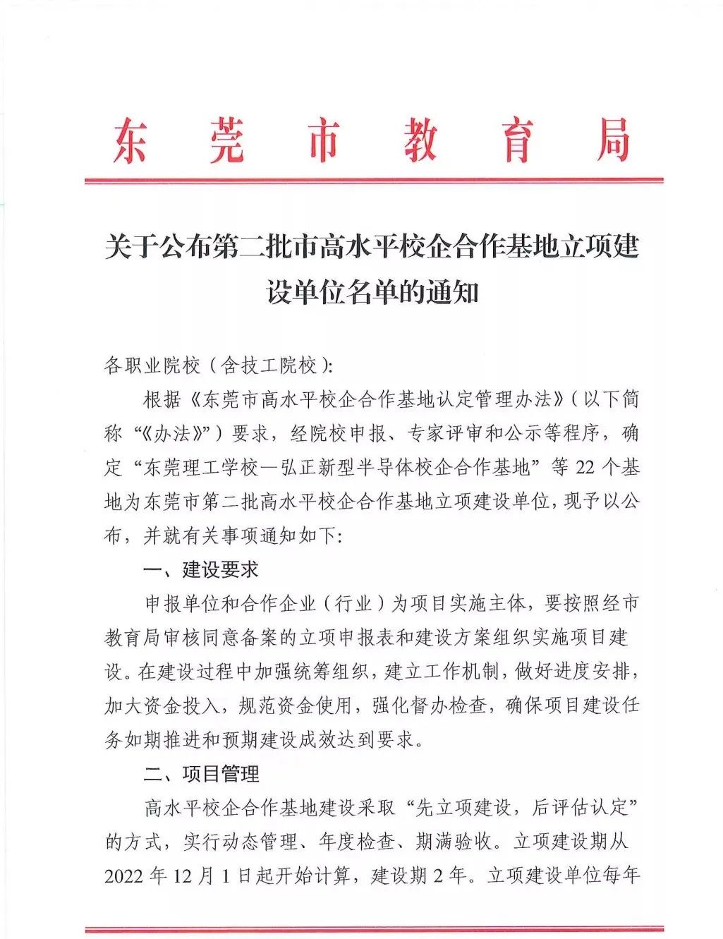 市教育局納入為東莞市第二批高水平校企合作基地立項建設單位