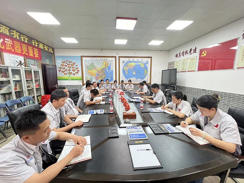 凝聚合力,號召全體員工統(tǒng)一思想、全力以赴、勇?lián)姑?,決戰(zhàn)決勝2023。重慶子公司全體員工參與,物控總監(jiān)陳香草主持會議。