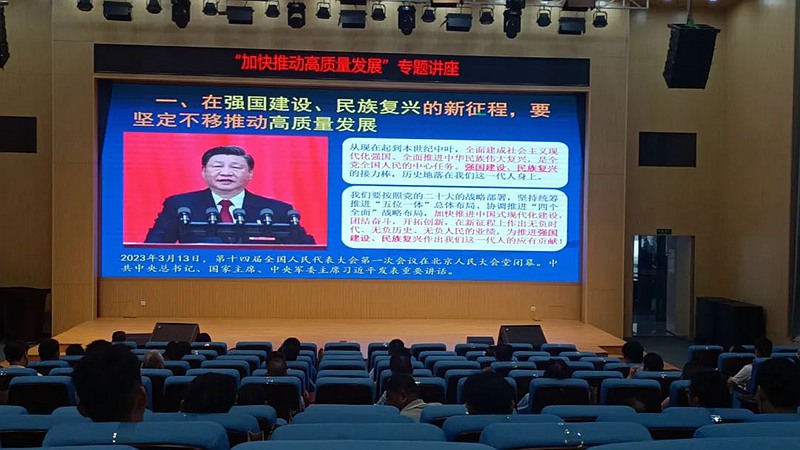 講座邀請了廣東省委黨校(廣東行政學(xué)院)原副校長、教授陳鴻宇授課,重點圍繞高質(zhì)量發(fā)展的內(nèi)涵與理論邏輯、“四個必須”、廣東實踐、以及“百千
