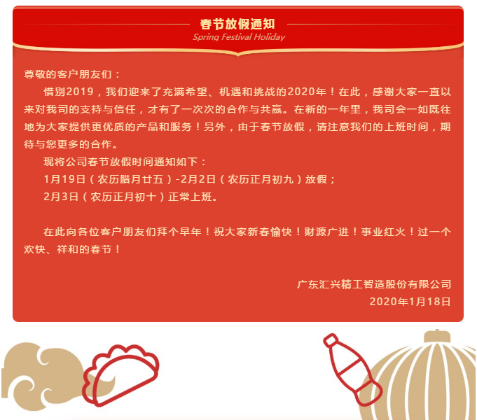 尊敬的客戶朋友們: 惜別2019,我們迎來了充滿希望、機遇和挑戰(zhàn)的2020年!在此,感謝大家一直以來對我司的支持與......